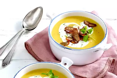 Broccoli Cream Soup With Diced Bacon And Coriander