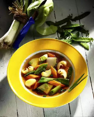 Chicken Bouillon With Carrot Dumplings And Spring Onions
