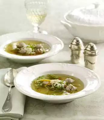 Consommé With Cheese Meatballs
