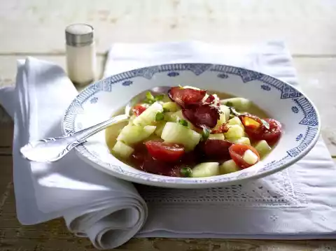 Braised Cucumber Stew With Cabanossi And Tomatoes