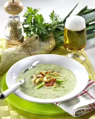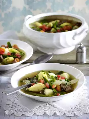Fine Porcini Mushroom Soup With Peas And Carrots