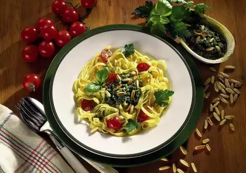 Homemade Maultaschen With Chard And Mushroom Filling In Clear Broth