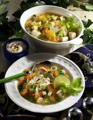 Chicken Bouillon With Carrot Dumplings And Spring Onions