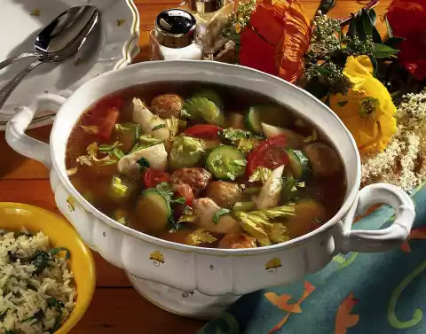 Tomato Soup With Meatballs And Parmesan Ciabatta