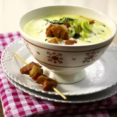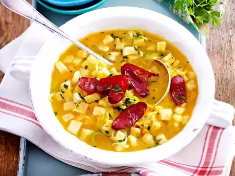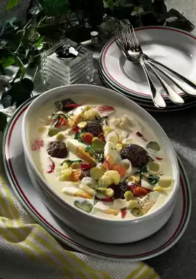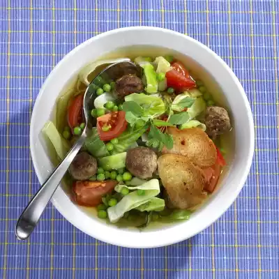 Vegetable Broth With Small Meatballs And Vegetable Julienne