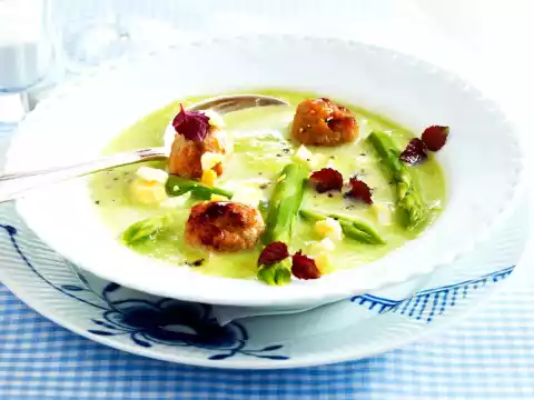 Green Asparagus Cream Soup With Dumplings And Cress