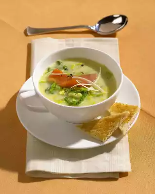 Fine Savoy Cabbage Soup With Horseradish Cream Cheese And Smoked Salmon