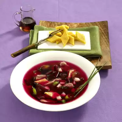 Tomato Soup Four Times Different: With Bread Croutons, Roasted Garlic, Bacon And Chives