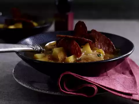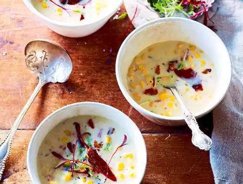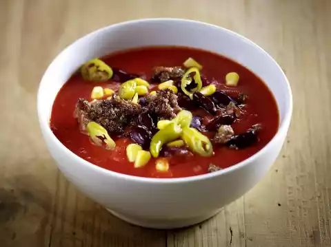 Bean And Tomato Soup With Chorizo And Cream Yoghurt