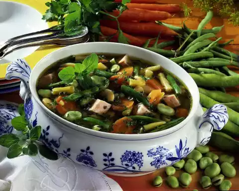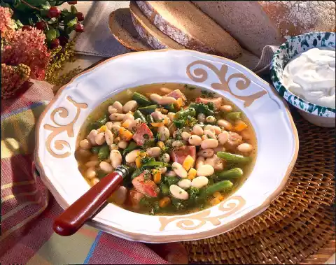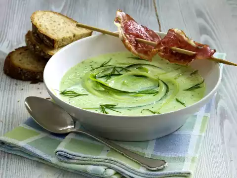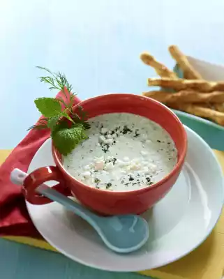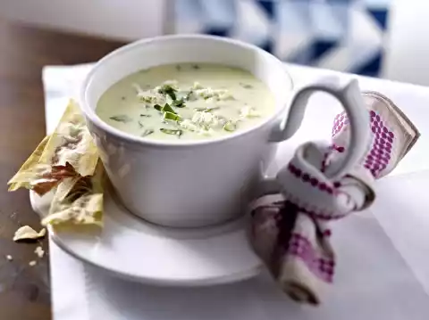 Wild Garlic Robiola Soup With Crispy Filo Strips