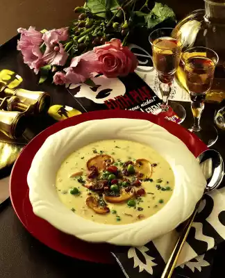 Mushroom Cream Soup With Thyme Parmesan Chips