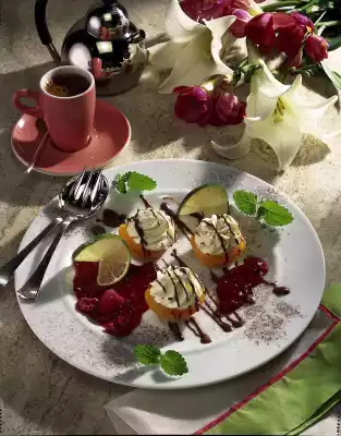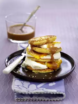 Coconut Pancakes With Mango, Crème Fraîche And Caramel