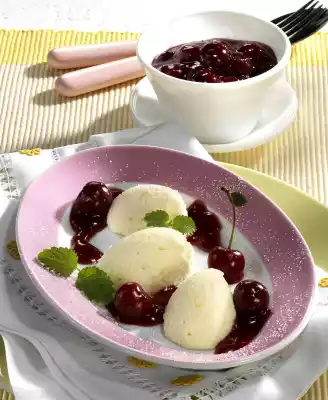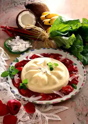 Apricot Cream With Chocolate Crunchy Pralines And Melissa Decoration