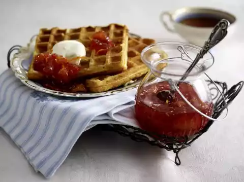 Sour Waffles With Blood Orange Rooibos Marmalade