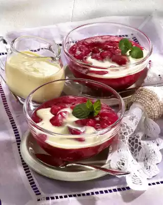 Panna Cotta Tureen With Currant And White Wine Jelly And Orange Sauce