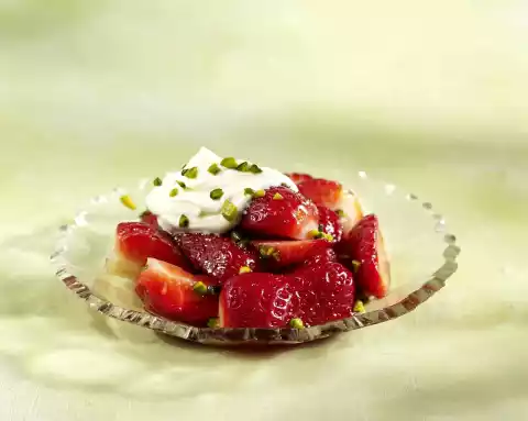Strawberries With Pistachios, Vanillin Sugar And Crème Fraîche