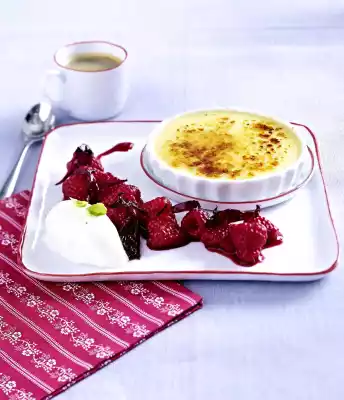 Crème Brûlée Légère With Raspberries Hibiscus And Basil Sorbet