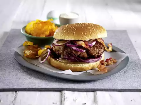 Luxury Burger With Sweet Potato Chips