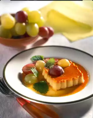 Cream Caramel With Grape Salad