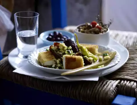 Baked Feta Cheese With Date Zucchini Salad