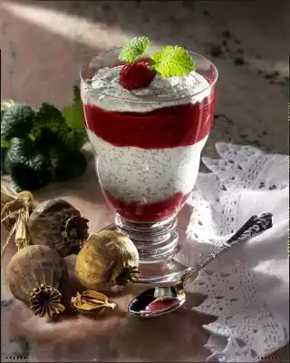 Layered Curd And Poppy Seed Dish With Raspberry Puree