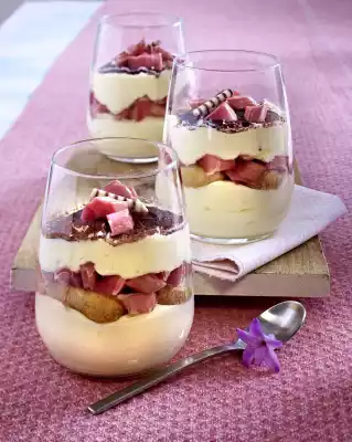 Tiramisu With Rhubarb Compote In Glass