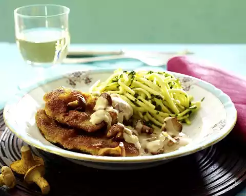Chicken Skewers Garnished With Honey Mustard And Cucumber-cress Salad