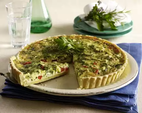 Herb Quiche With Peppers, Zucchini And Mozzarella