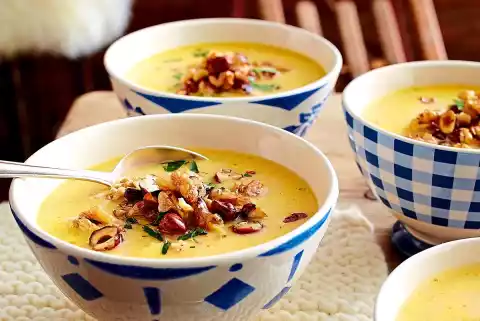 Blitz Fondue Soup With Nut Crumbs