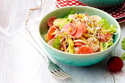 Cheese And Sausage Salad With Sweet And Sour Radishes