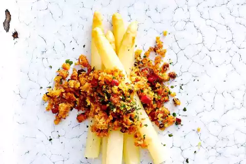 Quick Asparagus Sauce: Bacon Pangrattato