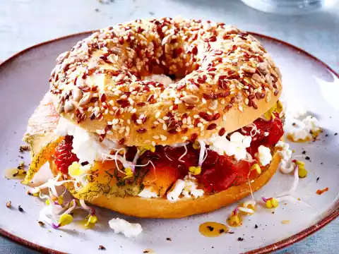 Wholemeal Bagel With Salmon And Dried Tomatoes