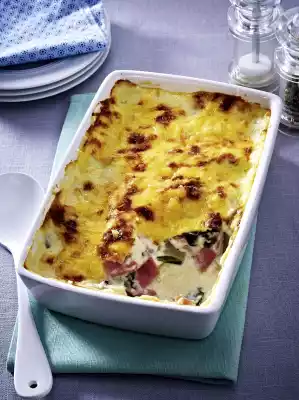 Turkey Saltimbocca With Wild Garlic, Roast Potatoes And Green Beans