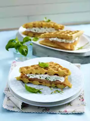 Stuffed Carrot Waffles With Smoked Salmon And Herb Cream Cheese