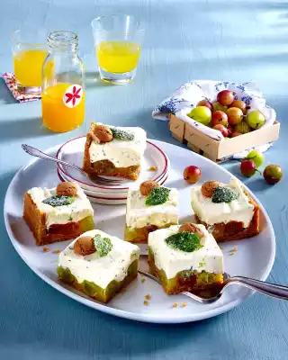 Gooseberry Fridge Cake With Cream Cheese And Mint Topping