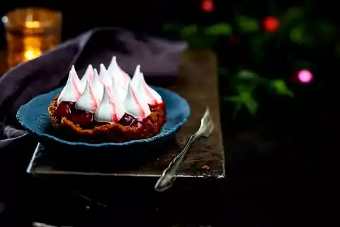 X-Mas-Portionspie (gingerbread Tartlet With Cherry Compote And Egg White Cream)